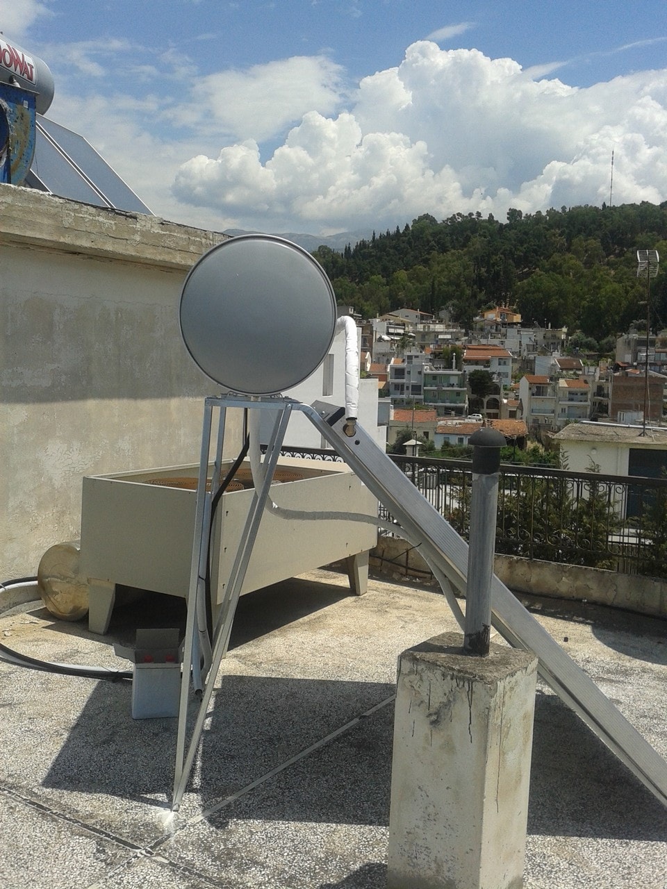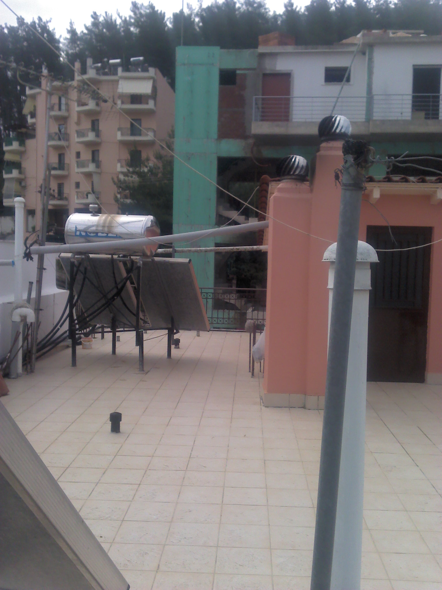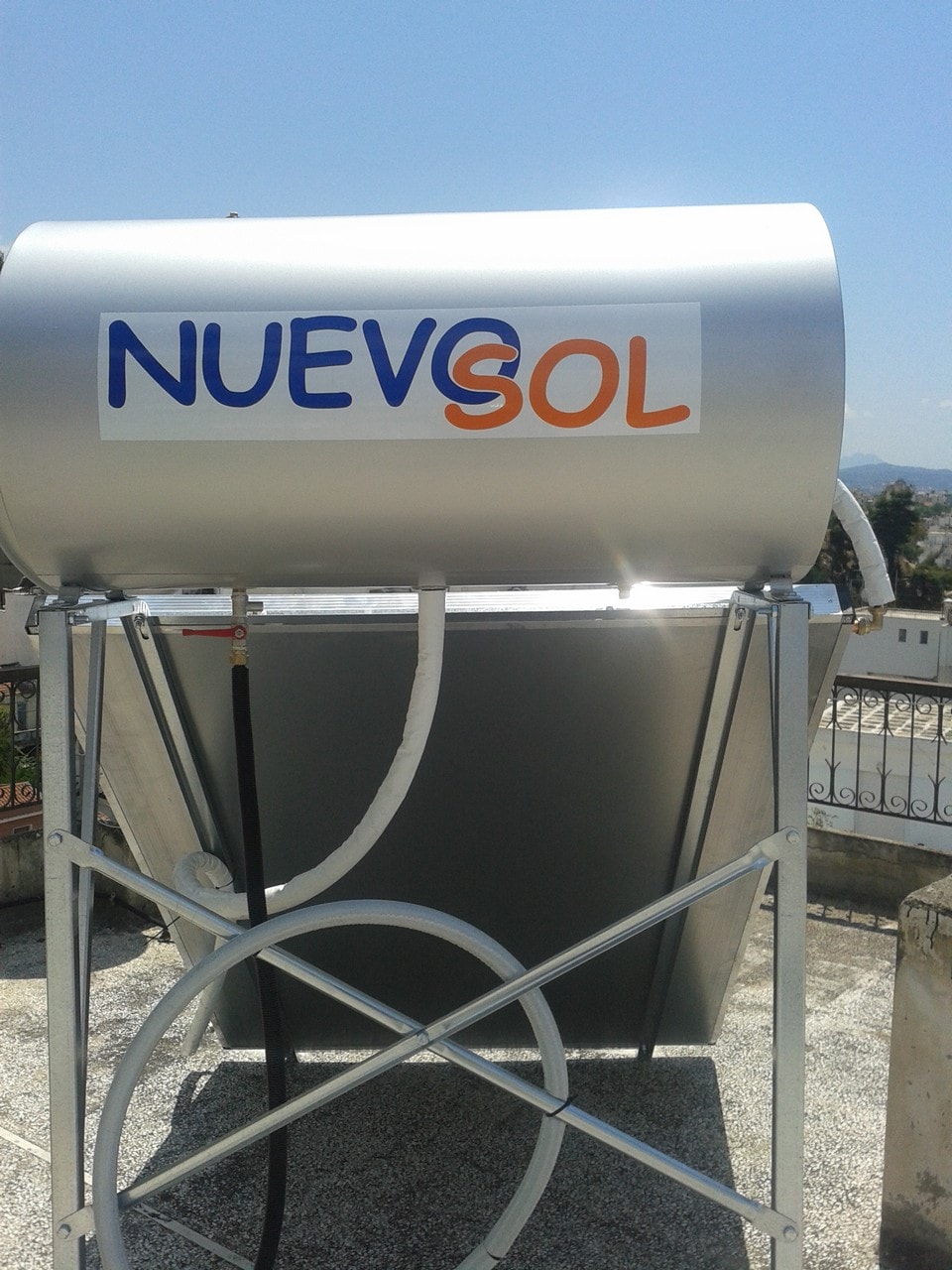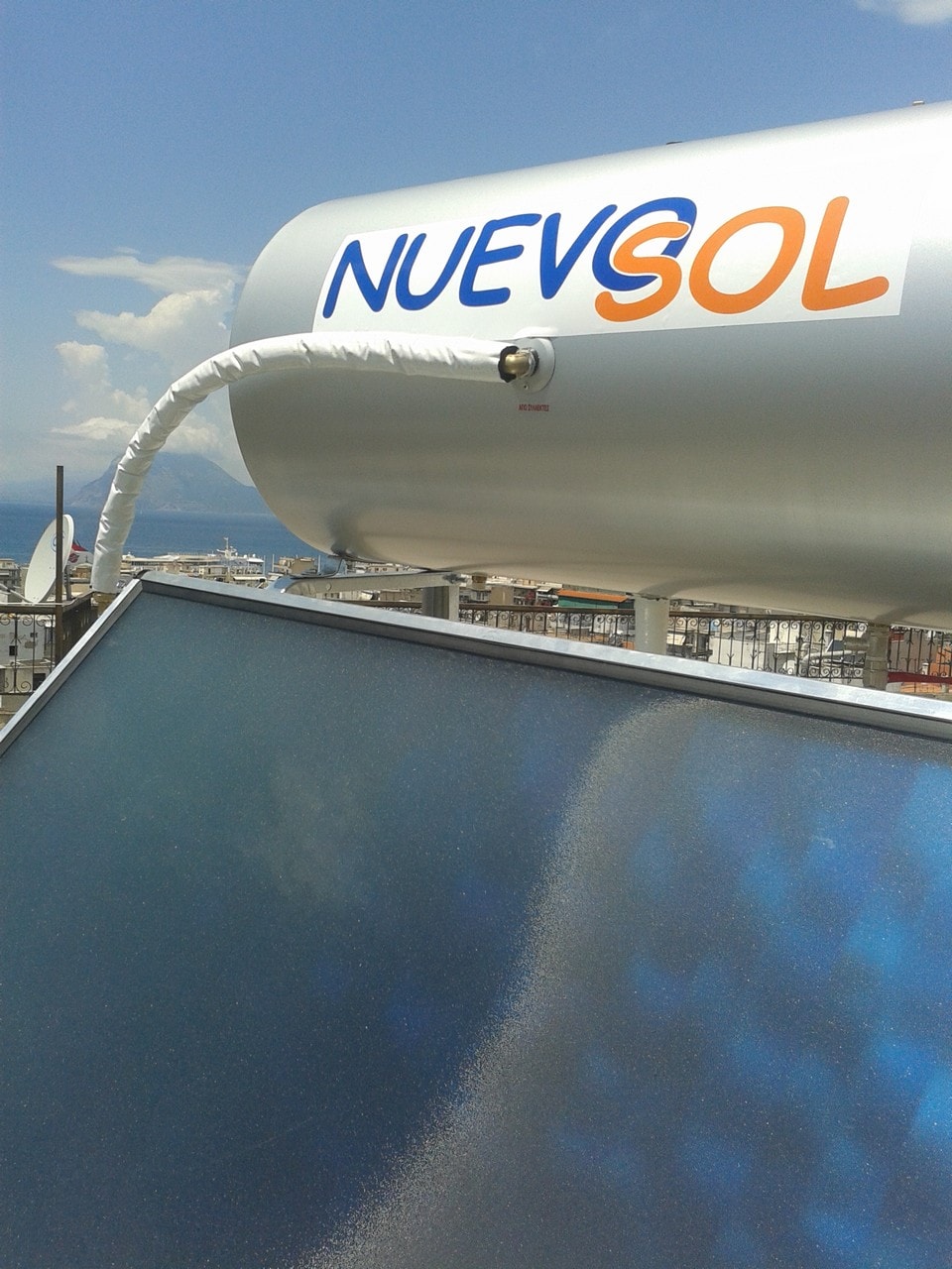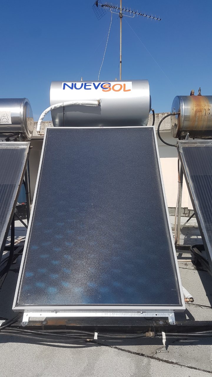 Εγκατάσταση ηλιακού θερμοσίφωνα NUEVOSOL 170 lt διπλής ενεργειας με 2,58 τμ επιλλεκτικού συλλέκτη, σε ταράτσα πολυκατοικίας για την απόλυτη εξοικονόμηση ενέργειας.